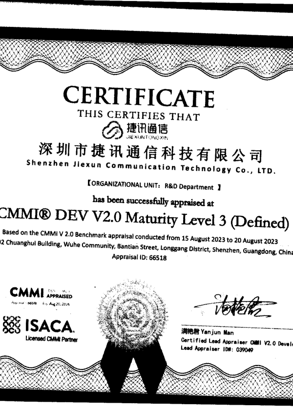 CMMI3認(rèn)證證書(shū)